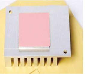 4.撕去保护膜的一面,朝向散热器,先将导热硅胶片对齐散热器。缓慢放下导热硅胶片时。要小心避免气泡的产生。